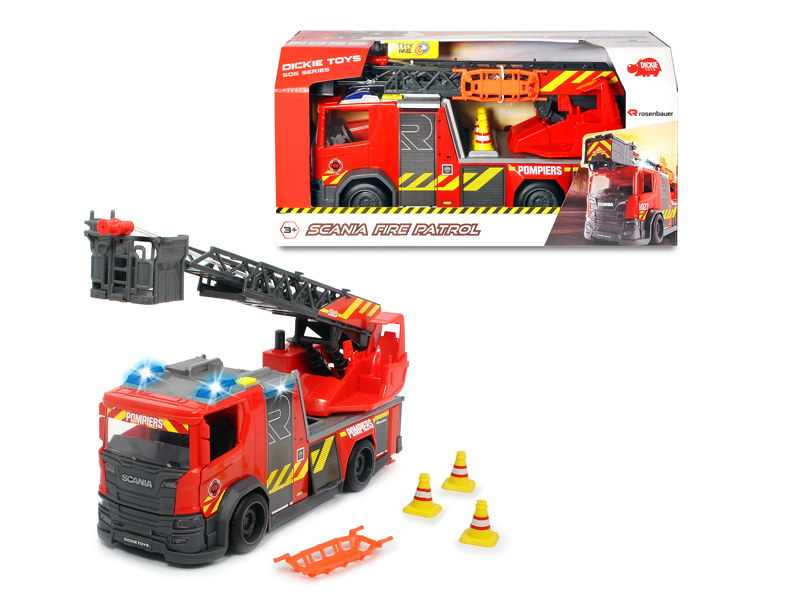 3716017 Пожежна машина "Сканія" з телескопічною драбиною, зі звук., світл. та водним ефектами, довжина 35 см, 3+