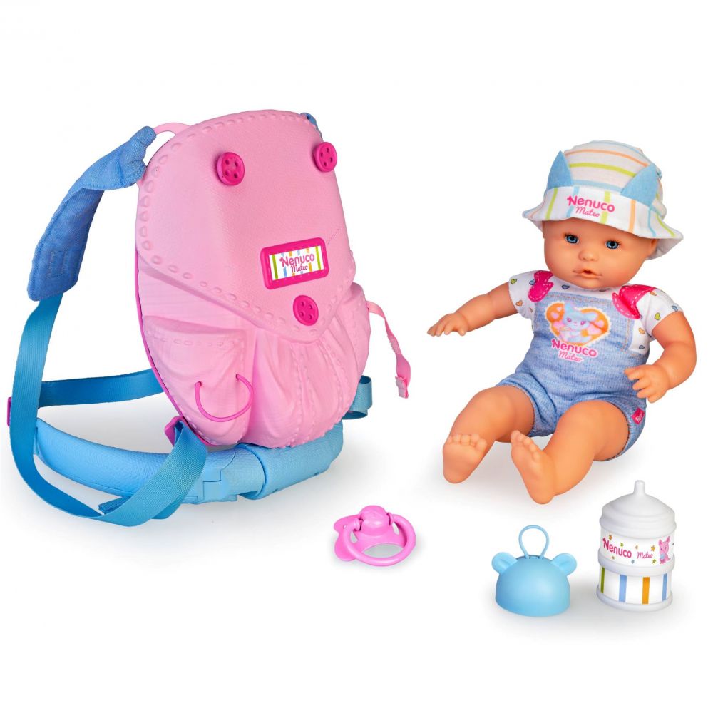 В комплект входить: Лялька, капелюх-панамка, пустушка, іграшкова пляшечка, іграшковий рюкзак-переноска для ляльки