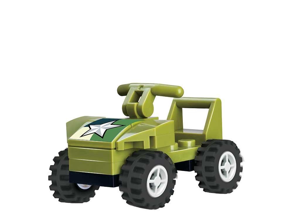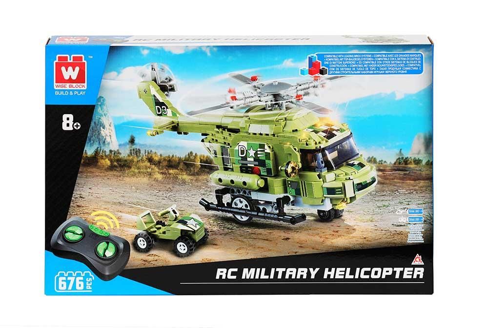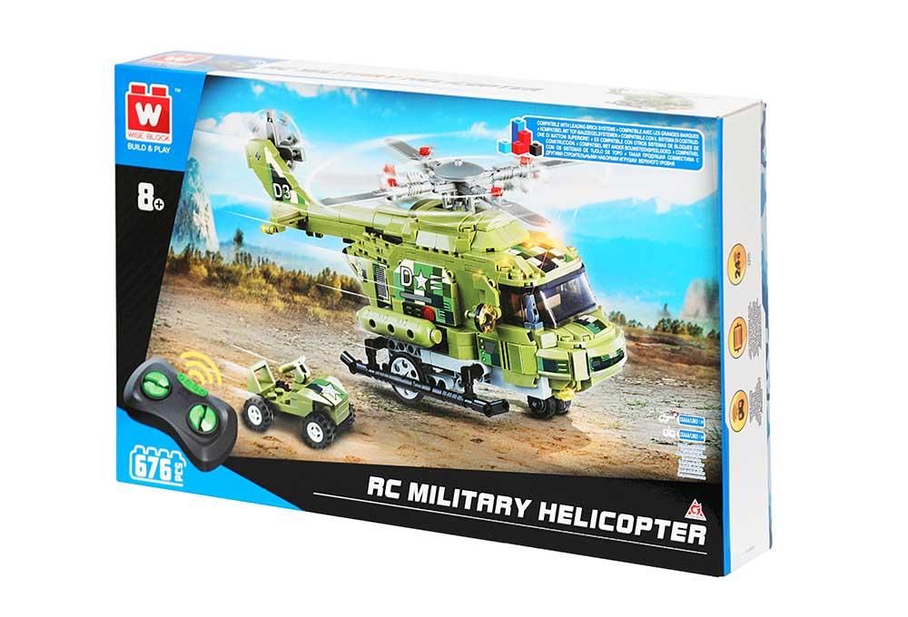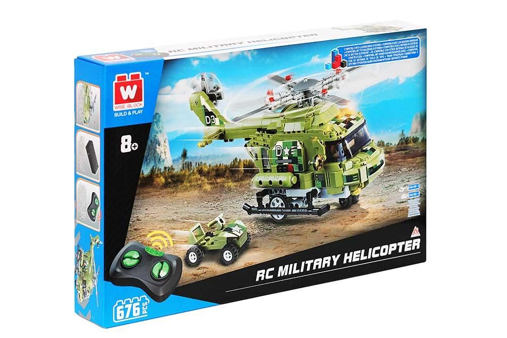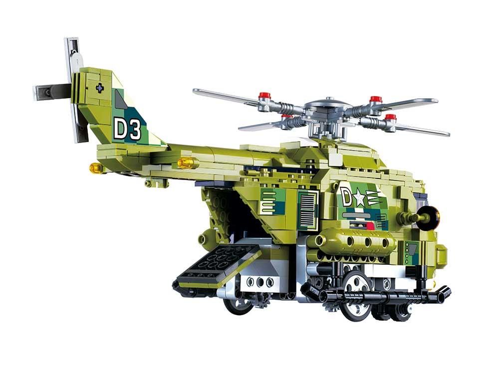Машина-конструктор делюкс на дистанційному керуванні "Військовий гелікоптер" - це набір, що включає в себе 676 деталей. Пульт з радіочастотою 2,4 ГГц і високопродуктивний двигун автомобілів дозволяють вправно керувати транспортними засобами для ігор на вулиці та в приміщенні. Набір дає можливість зібрати вертоліт, а також машинку, яка вантажиться до гвинтокрила. Вертоліт має захоплюючі функції - такі як рухомі ротори та відкидні двері хвостової кабіни, в якій можна розмістити всюдихід. Це набір 2в1 - спочатку дитина збирає конструктор, а потім за допомогою пульта може дистанційно керувати ним. Під час управління вертоліт рухається по землі, а його ротори обертаються.