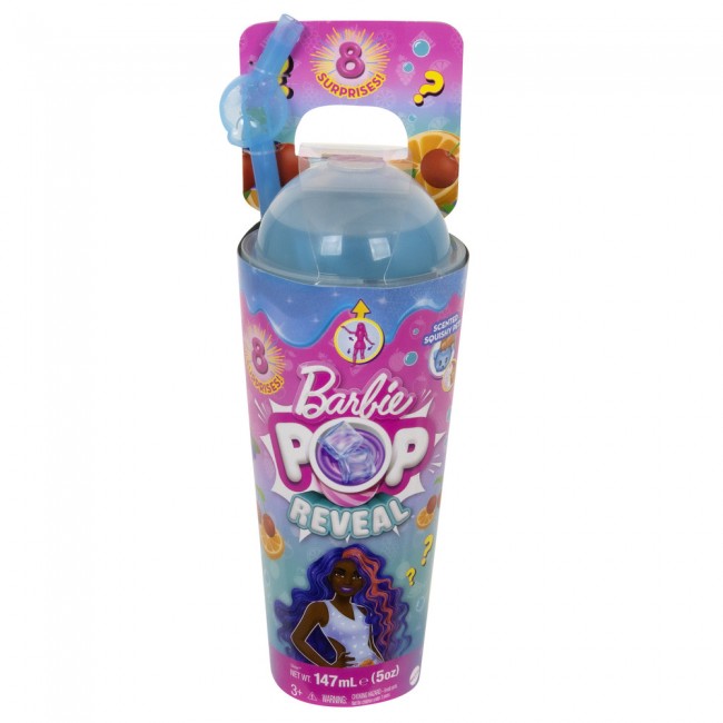Нове найфруктовіше перевтілення улюбленої Barbie в колекції Pop Reveal! У першій колекції серії "Соковиті фрукти" 4 різні ляльки приховані в яскравих стилізованих стаканчиках для напоїв різних смаків, а саме полуничний лимонад, вітамінний пунш, кавуновий смузі та виноградна содова.