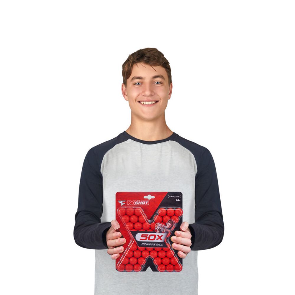 Поліпшіть свою гру з лінійкою удароміцних бластерів X-Shot FaZe. X-Shot FaZe випускає снаряди з дальністю до 27 метрів і вражає ціль з максимальною точністю. З запасним комплектом X-Shot FaZe Blaster боєприпаси ніколи не закінчаться!