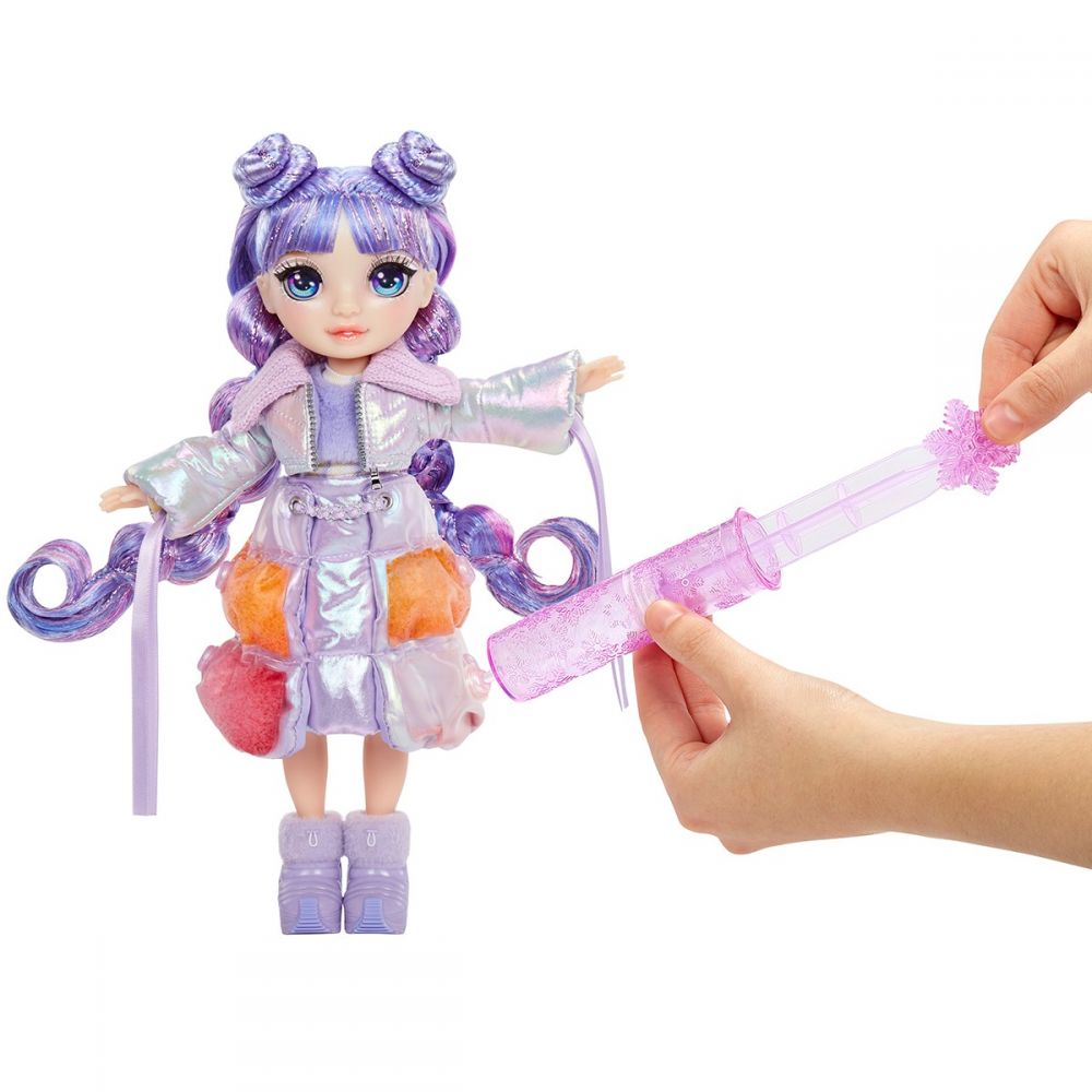 Лялька RAINBOW HIGH серії "Winter Wonderland" - ВІОЛЕТТА - стильна красуня з волоссям та одягом ніжного фіолетового кольору. Особливості: перед початком гри уважно ознайомтеся з інструкцією; повна артикуляція ляльки; довге розкішне волосся, яке можна розчісувати і створювати різні зачіски; неймовірно красиві та виразні скляні очі з "справжніми" віями; висота лялечки – 28 cm; у ляльки чарівний "сніг" в одязі! За допомогою шприца додайте до снігу трохи прохолодної води і спостерігайте, як сніг чарівним чином збільшується і змінює колір, змінюючи образ модниці. зліпіть милий сніговик з кінетичного піску! Розтягуйте його, тисніть, змінюйте його образ за допомогою забавних аксесуарів знову і знову.