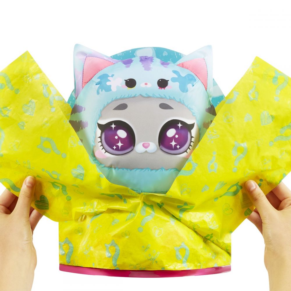Сюрприз на цьому не закінчується! Розстебніть липучку на потилиці кошеняти, щоб знайти чудову ляльку Емму Емо, заховану всередині! Повторюйте надувні забави: просто перемикайте перемикач внизу костюма тваринки, щоб надути кошеня знову і знову! Ви можете грати разом лялькою та надувним костюмом тваринки.