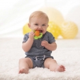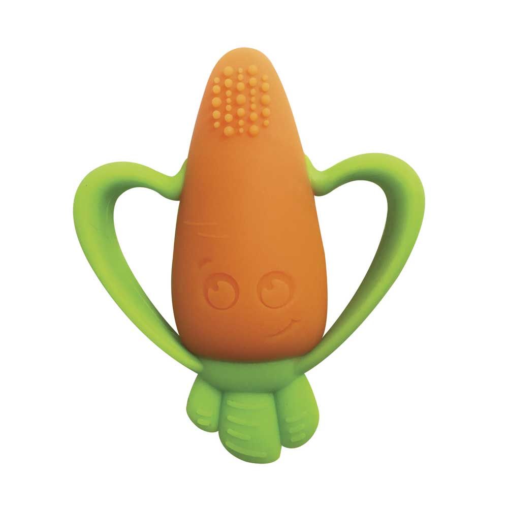 За допомогою рельєфної поверхні на кінчику моркви масуються ясна дитини, а дві комфортні ручки дозволяють малюкові міцно тримати прорізувач.