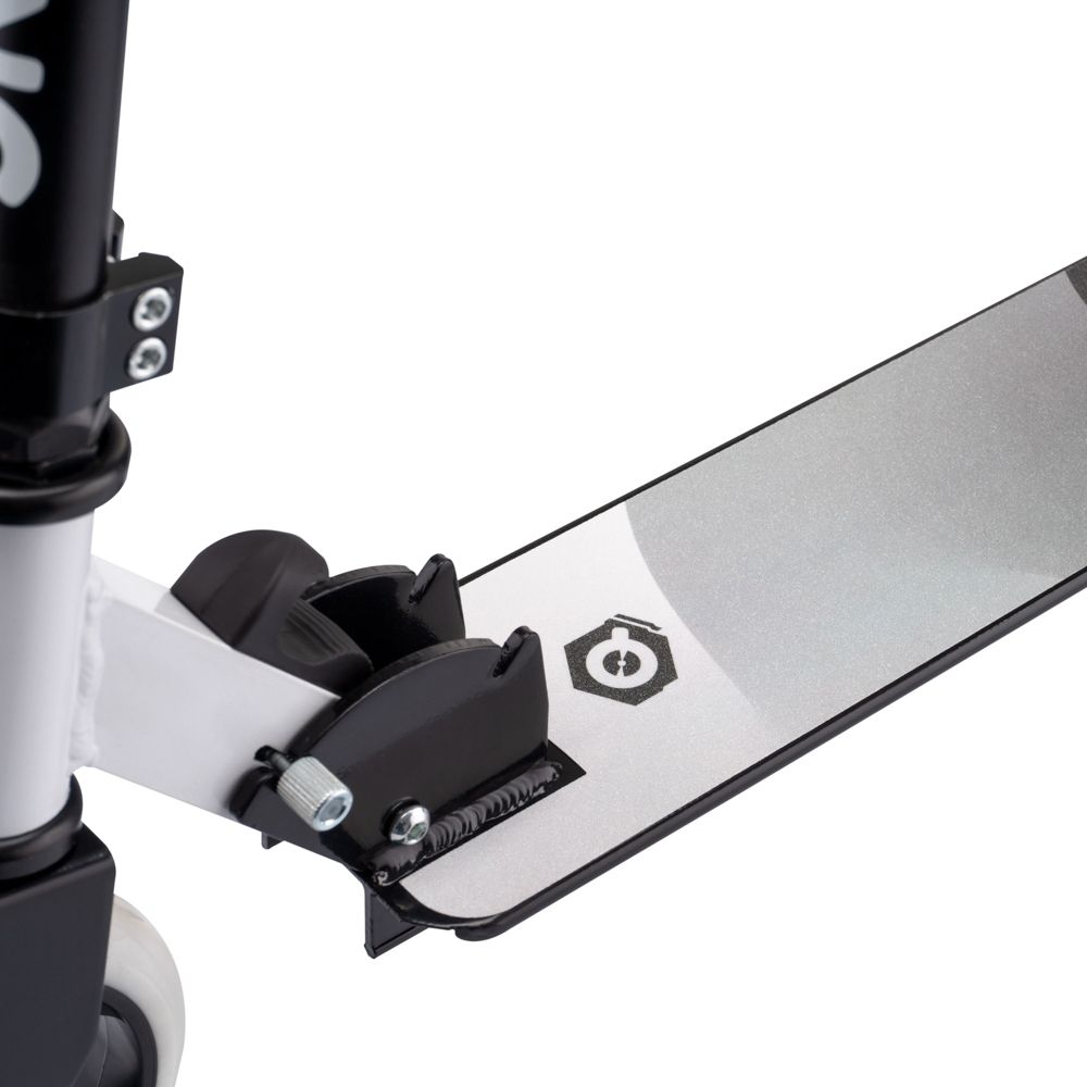 Самокат Miqlong Gimlet був створений з урахуванням дітей шкільного віку і підлітків. При проектуванні цієї моделі основна увага була зосереджена на зручності користування та комфорті їзди. Завдяки стриманому дизайну і відсутності "дитячих" елементів в дизайні, він не втратить своєї актуальності з роками. Ця модель самоката Miqilong розрахована на користувачів зростом до 150 см та вагою до 70 кг і може використовуватися протягом багатьох років, приносячи радість і комфорт. Виготовлений повністю з алюмінію, самокат є дуже легким для свого розміру, його вага становить всього 2,8 кг. Завдяки такій вазі і колесам не дуже великого розміру 145 мм, на ньому буде зручно кататися навіть дітям віком від 5 років. При цьому колеса мають достатньо великий розмір, щоб легко подолати більшість нерівностей асфальту. А кермо регулюється по висоті до 95 см, що дозволяє використовувати його до 16 років. Для зручності зберігання та транспортування самокат повністю складається, включаючи ручки. Відмінною особливістю цієї моделі є механізм складання ручок керма зі спеціальним зажимом-кліпсою та ущільнювачами. Завдяки використаній системі, ручки не мають жодної вібрації під час їзди. Це значно поліпшує якість їзди і позбавляє конструкцію недоліків, притаманних більшості моделей зі складними ручками, не обладнаними зажимом.