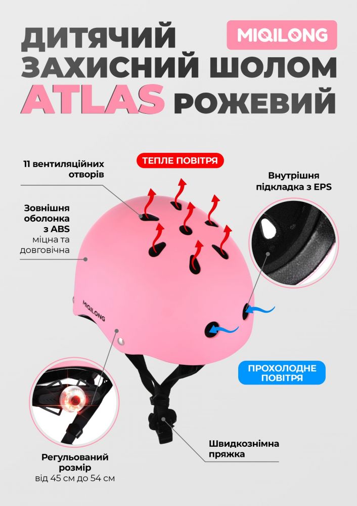 Дитячий захисний шолом Miqilong Atlas рожевий