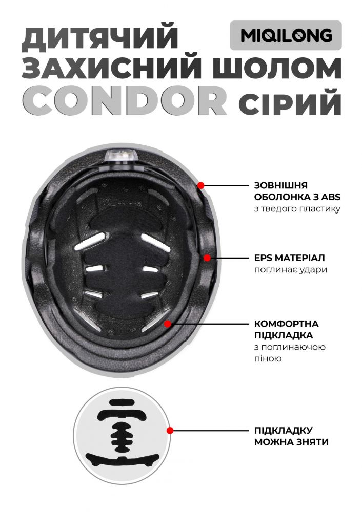 Дитячий захисний шолом Miqilong Condor сірий