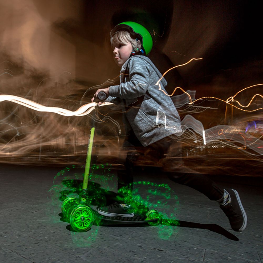 Neon Glider Air триколісний скутер для найменших. Neon Glider Air оснащується триколісною базою та сучасною, безпечною технологією повороту керма за допомогою нахилу, що забезпечує більшу стабільність та ефективність у процесі навчання навички керування транспортними засобами. Neon Glider Air ідеально підходить для зміцнення впевненості та засвоєння новиків рівноваги. Особливості Neon Glider Air: Безпечне керування кермом Світлодіодні колеса спалахують, коли ви рухаєтеся Широка платформа і велике ножне заднє гальмо Підходить для віку 3+ Максимальна вага користувача 20 кг Габарити у зібраному вигляді 55х25.5х66 см. Вага 2.3кг Розмір передніх коліс 125 мм.