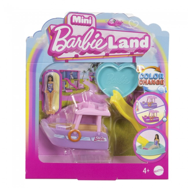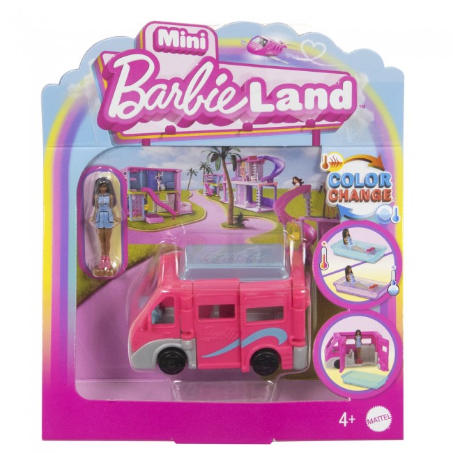 Кожен ігровий набір включає в себе зменшену копію культового транспорту Barbie з функцією зміни кольору та 4-сантиметрову лялечку! Використовуйте холодну воду, щоб змінити колір транспорту або окремої деталі (залежно від набору), і теплу воду, щоб повернути попередній вигляд. Повторювати цю гру можна знову і знову!