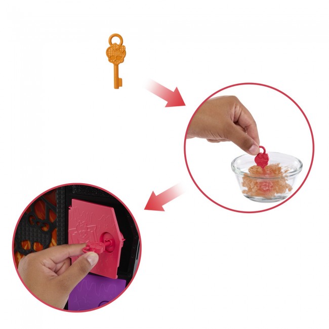 А що знаходиться в інших комірках? Для цього знадобиться ключ із першої шафки. Занурте його у теплу воду та спостерігайте за ефектом "Кольорового перевтілення" (вода змиває фарбу). Тепер ключ такого ж кольору, як і дверці, які можна ним відкрити. Всередині знову фантастичні подарунки та наступний ключ. Повторюйте гру з перевтіленням, доки не будуть відкриті усі відсіки і знайдені усі сюрпризи! Покрокове розпакування створює відчуття магії та загадки, від якого діти будуть у шаленому захваті.