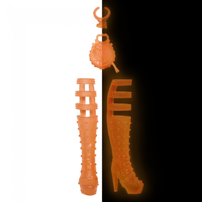 А тепер найцікавіше - вимкніть світло, щоб виявити 3 аксесуари, які світяться в темряві (чоботи, сумочка та чокер)! Це ключова особливість нової колекції "Неонові та бомбезні".