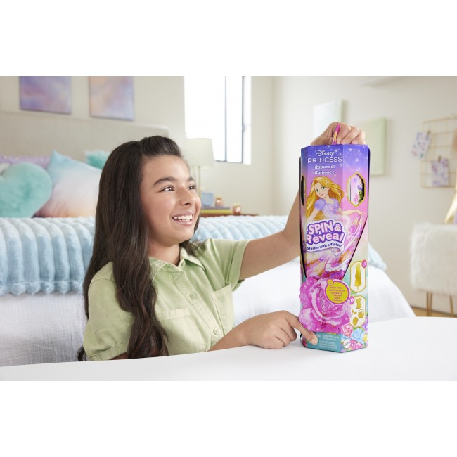 Створена за образом героїні мультфільму Disney "Заплутана історія", лялька Рапунцель серії "Крути та прояви" пропонує новий досвід розпаковки сюрпризів!