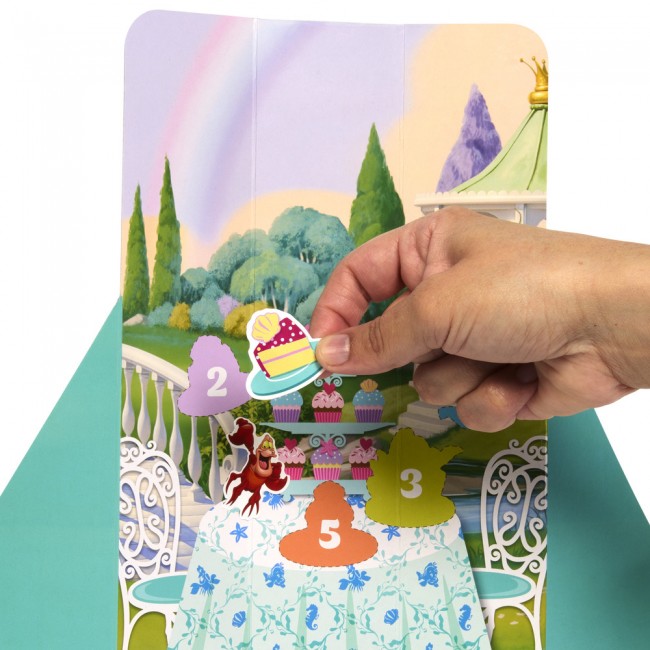 Діти можуть прикрасити ігрову сцену наліпками по номерах і використовувати її як тло для розігрування пригод зі своєю лялькою Аріель.