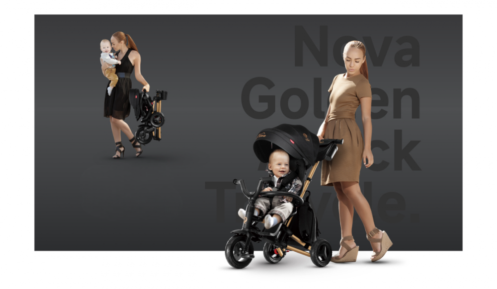Велосипед складаний триколісний дитячий Nova Pro з надувними колесами Gold Matt - Black