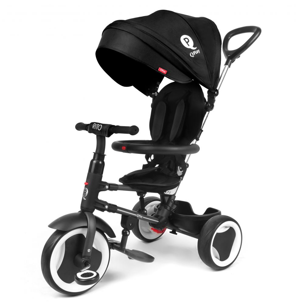 Rito - став першим триколісним велосипедом в лінійці QPLay. Одна з головних переваг його складального механізму - вам не потрібно переносити його в складеному стані, ви можете просто везти за собою, як візок або покласти кудись (наприклад, в багажник автомобіля). Може зберігатися як у вертикальному, так і в горизонтальному положенні. Легкий, розкладний, багатофункціональний. - для діток від 10 місяців використовуйте його в повній комплектації (капюшон, батьківська ручка, сидіння з високою спинкою, захисний бампер) зі спеціальною вбудованою підніжкою для найменших користувачів. - від 2 років малюк може пробувати крутити педалі. Дитячу підніжку можна скласти, а капюшон від'єднати для кращого обзору навколо. - від 4 років малюк може використовувати велосипед самостійно, як класичний триколісний, зі зручною корзиною для іграшок. Достатньо від'єднати батьківську ручку, високу спинку сидушки.