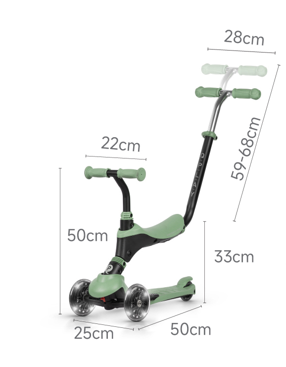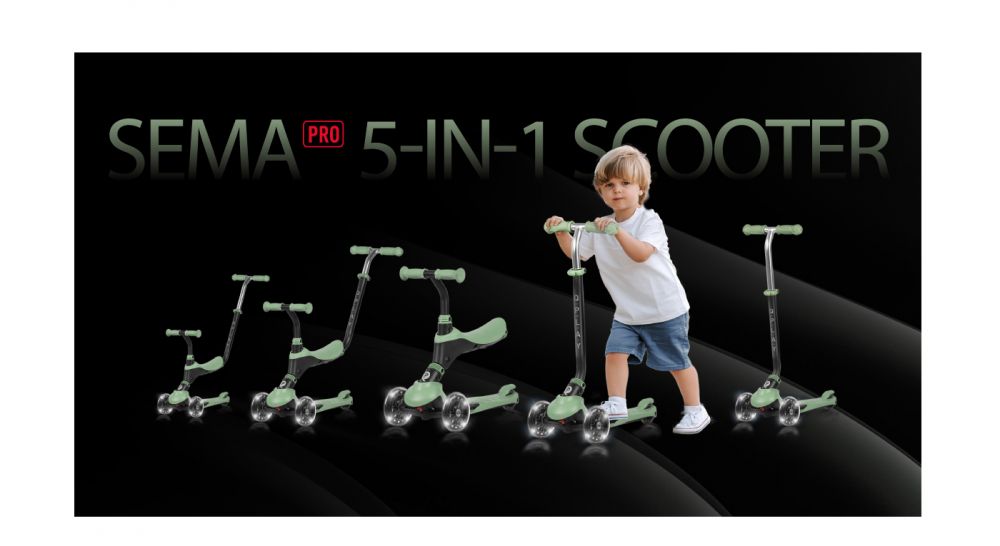 Самокат SEMA PRO 5 в 1 — це оновлена версія моделі SEMA з додатковим вдосконаленням у вигляді світлодіодного підсвічування передніх коліс. Адаптується до віку та потреб дитини. Відноситься до сімейства продуктів GROW UP - росте разом з дитиною. SEMA - ідеальне рішення для активних дітей, які знаходяться в постійному русі. Самокат тренує моторику, силу і м'язи ніг, і піклується про координацію рухів. 1 варіант використання Seat Mode – як велосипед з сидінням та батьківською ручкою 2 варіант використання Seat Mode – як біговел 3 варіант використання Scooter Mode – як самокат Гарантія якості. Рама дитячого самоката складається зі стійких деталей із пластику та алюмінієвого сплаву, включає в себе міцну внутрішню частину з аерокосмічного алюмінію, а зовнішня сторона обгорнута м’якою гумою TPR. Самокат розроблений таким чином, щоб витримувати різні режими його використання.
