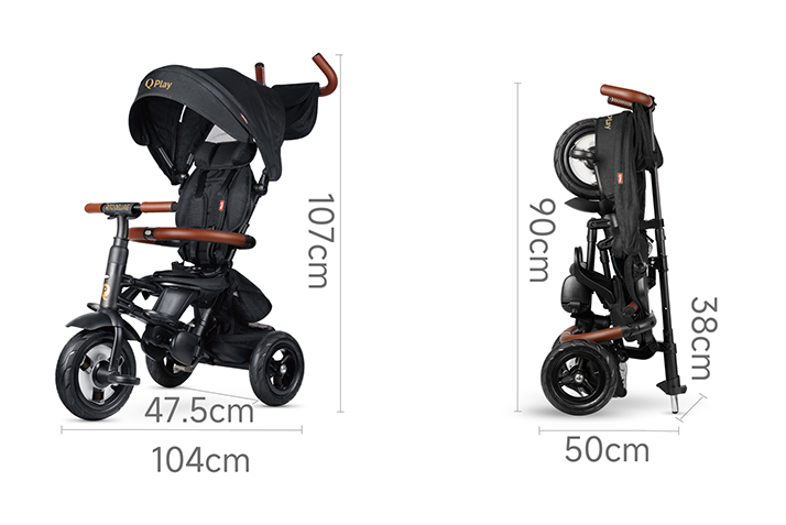 Rito Deluxe пропонує інноваційну та зручну систему складання, яка активується натисканням кнопок. Триколісний велосипед оснащений м’яким сидінням з високою спинкою, п’ятиточковими ременями безпеки та знімним захисним бампером, який легко прибрати, коли дитина підросте. Його конструкція має подвійну гальмівну систему та кермо з режимом блокування. Для максимальної зручності в догляді та стильного вигляду, захисний бампер, батьківська ручка та ручки керма для малюка покриті м’яким і високоякісним шкірзамінником, прошитим вручну.