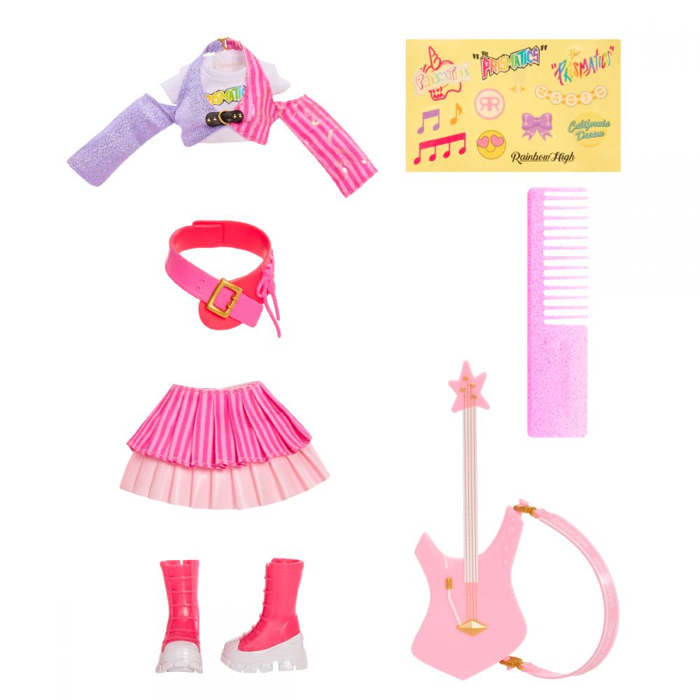Зустрічайте нову серію RAINBOW HIGH «Junior High Rockband» — гурт, що диктує ритм не лише в музиці, а й у моді! Чотири молодші версії улюблених героїнь збираються разом, щоб створити власний гурт: з гітарами, мікрофонами та вибуховим настроєм. Від репетицій до справжніх концертів — шоу триває, а ваша уява задає ритм! Зберіть їх усі та створіть свою модну та стильну веселку!
