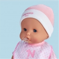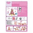В комплект входит: Кукла, шляпа, игрушечная бутылочка, пустышка с веревкой, горшок, подгузник, тарелка с ложкой, фартук, игрушка-утенок
