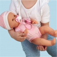 Ненуко Сара словно настоящий ребенок! Девочка умеет: Закрывать глазки, когда спит. Плакать "настоящими" слезками. Двигаться как ребенок, ведь имеет шарнирные руки, ножки и шею. Пить из своей бутылочки. Есть. Ей можно приготовить кашицу и покормить. У нее есть свои тарелочка и ложечка. Каша в набор не входит, но обычно используют любой простой несладкий полужидкий раствор на водной основе, например с крахмалом. Пользоваться горшком. Пачкать подгузник: "писать" и "какать". Без должного ухода получать опрелости. Сара нежно, по-детски пахнет. А еще, как и все дети, очень любит купаться. Набор включает 9 аксессуаров по уходу. Сара одета в розовый боди, на котором вышитое ее имя.