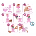 Создайте волшебный хвост для вашей русалочки с помощью сияющих гелей! Для этого поставьте форму для хвоста на подставку, добавьте гель с цветного флакона в белый (большего размера) и смешайте содержимое для блестящего хвостика! Налейте гель в форму для хвостика, поставьте туда куколку в спасательном жилете, закрепите фиксаторами и подождите 5-10 минут для застывания. Затем снимите форму и погружайтесь в веселую игру! Хвост может менять цвет в холодной воде! Для этого окуните хвост куколки в воду температурой 0 градусов Цельсия и наблюдайте магию! Куколка может быть русалочкой или стильной девочкой! Снимите хвост и наденьте замечательную одежду из набора. В такую игру Вы можете поиграть несколько раз.