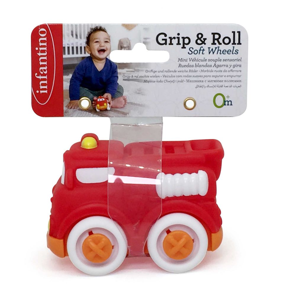Игрушка пожарная машинка от бренда Infantino. Внимание ребенка привлекают яркие детали и красочное исполнение.