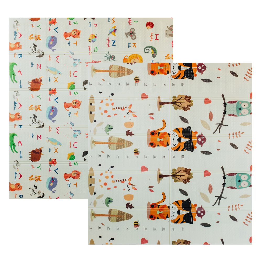 Детский двусторонний, складной коврик "Тигрёнок в лесу и Мир животных", 200х180x1 см