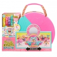 Куколка L.O.L. SURPRISE! собирается на лучшую вечеринку этого года. Только Вы сможете ее подготовить к этому празднику и сделать куколку самой яркой и стильной. Встречайте игровой набор с куклой L.O.L. SURPRISE - САЛОН ФЕЕРИЧЕСКИХ ПРИЧЕСОК С бусинками. Это раскладной набор в виде компактной сумочки голубовато-розового цвета, с ручкой-цепочкой. Погружайтесь в творчество с L.O.L. SURPRISE! Перед началом игры внимательно ознакомьтесь с инструкцией! Откройте сумочку - она превращается в настоящий салон красоты для куколки. Несколько зеркал, подиум, и еще 9 ящиков для хранения аксессуаров. Большое зеркало для ребенка, а маленькое для куклы. Салон красоты удобно переносить, ведь он складывается в сумочку, и Вы можете взять ее с собой. Для создания прически из волшебных бусинок: положите куколку на коврик, вставьте основы для прически в специальные отверстия и опустите их в воду. Разложите бусинки с помощью пинцета и сбрызните водой. Подождите 5-10 минут до полного высыхания, и ваша фантастическая прическа для куколки готова! Создайте так же прически на манекенах и расположите их в одном из 4 мест для них в кейсе, чтобы демонстрировать свои дизайны причесок Можно снять бусины с основы для прически и повторить процесс укладки с бусинами. Вы можете повторить этот процесс до двух раз. Демонстрируйте завершенный образ куколки на подиуме.