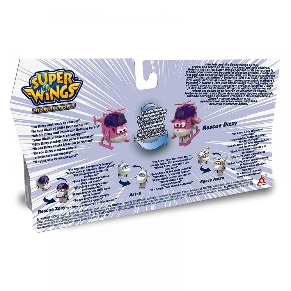 Ігровий набір Super Wings Transform-a-bots, 4 фігурки-трансформери, Діззі рятувальник, Зої , Астра, Астро