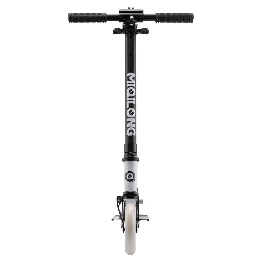 Самокат Miqlong Gimlet був створений з урахуванням дітей шкільного віку і підлітків. При проектуванні цієї моделі основна увага була зосереджена на зручності користування та комфорті їзди. Завдяки стриманому дизайну і відсутності "дитячих" елементів в дизайні, він не втратить своєї актуальності з роками. Ця модель самоката Miqilong розрахована на користувачів зростом до 150 см та вагою до 70 кг і може використовуватися протягом багатьох років, приносячи радість і комфорт. Виготовлений повністю з алюмінію, самокат є дуже легким для свого розміру, його вага становить всього 2,8 кг. Завдяки такій вазі і колесам не дуже великого розміру 145 мм, на ньому буде зручно кататися навіть дітям віком від 5 років. При цьому колеса мають достатньо великий розмір, щоб легко подолати більшість нерівностей асфальту. А кермо регулюється по висоті до 95 см, що дозволяє використовувати його до 16 років. Для зручності зберігання та транспортування самокат повністю складається, включаючи ручки. Відмінною особливістю цієї моделі є механізм складання ручок керма зі спеціальним зажимом-кліпсою та ущільнювачами. Завдяки використаній системі, ручки не мають жодної вібрації під час їзди. Це значно поліпшує якість їзди і позбавляє конструкцію недоліків, притаманних більшості моделей зі складними ручками, не обладнаними зажимом.