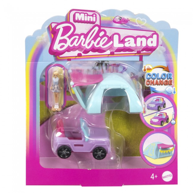 Кожен ігровий набір включає в себе зменшену копію культового транспорту Barbie з функцією зміни кольору та 4-сантиметрову лялечку! Використовуйте холодну воду, щоб змінити колір транспорту або окремої деталі (залежно від набору), і теплу воду, щоб повернути попередній вигляд. Повторювати цю гру можна знову і знову!