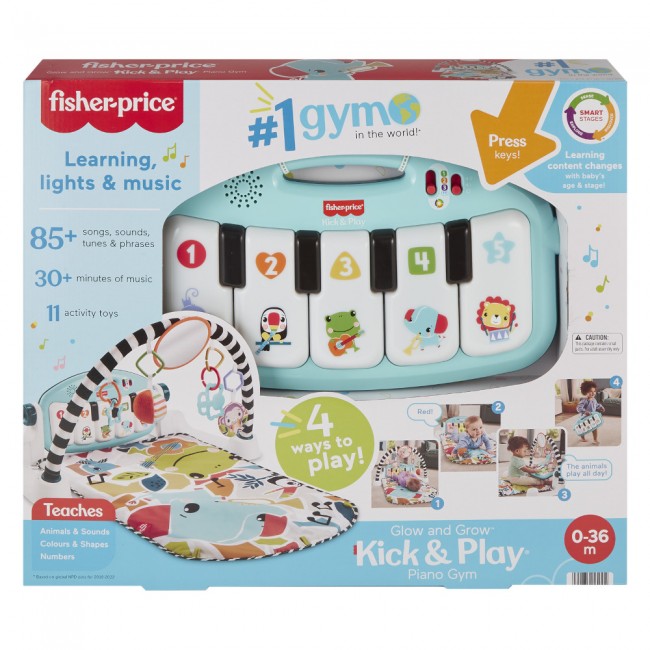Це класичний дитячий ігровий центр зі знімним іграшковим піаніно на 5 клавіш. Яскраві висококонтрастні візерунки, 85+ звуків, фраз та пісень англійською мовою, 30+ хвилин веселих мелодій та 10 підвісних іграшок спонукатимуть дитину до гри.