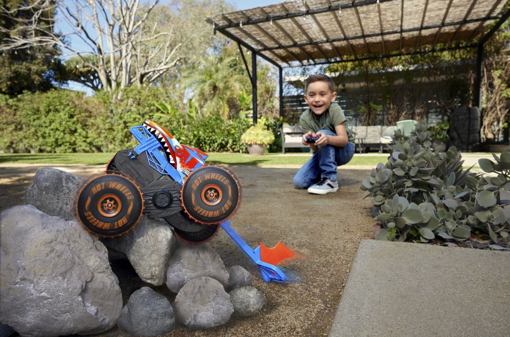 Hot Wheels Monster Trucks Tiger Shark Climber на радіокеруванні готовий до шалених зіткнень, вибухових трюків та екстремальних підйомів!